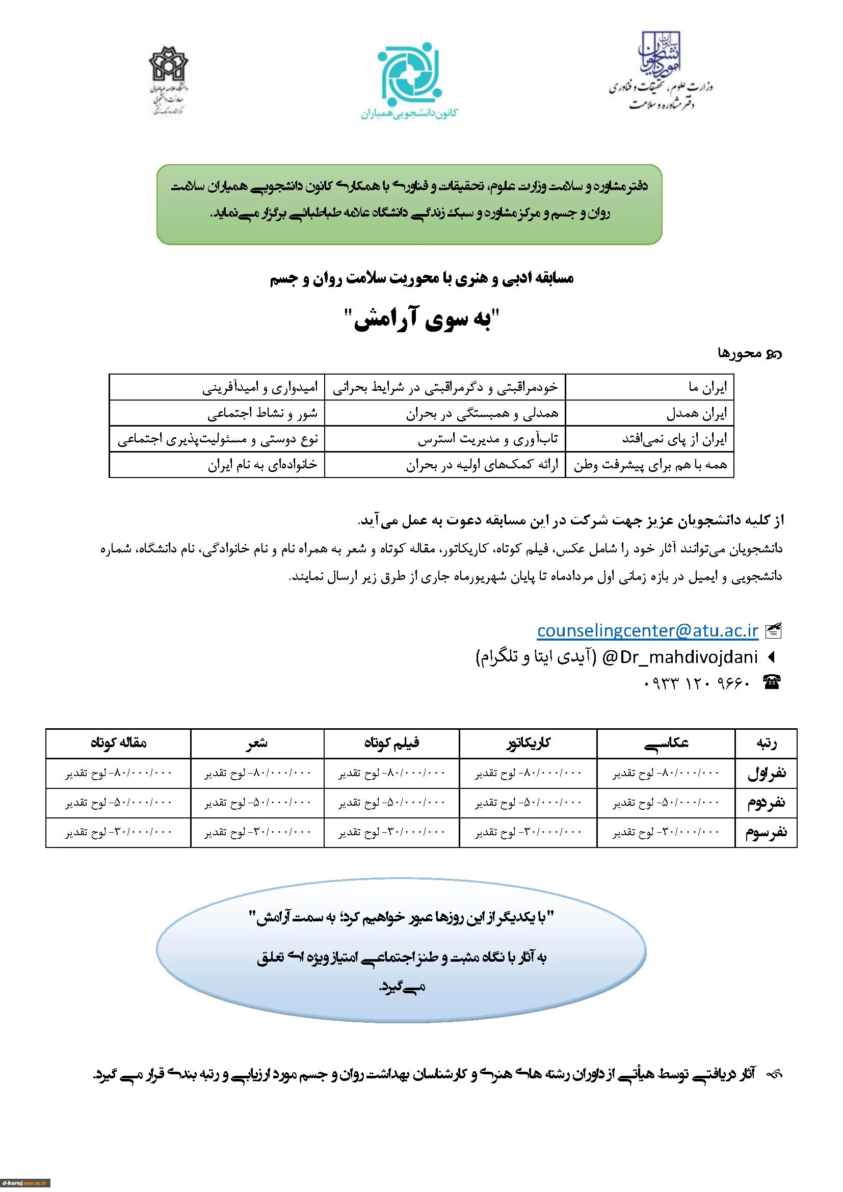 مسابقه علمی ادبی به سوی آرامش ویژه دانشجویان