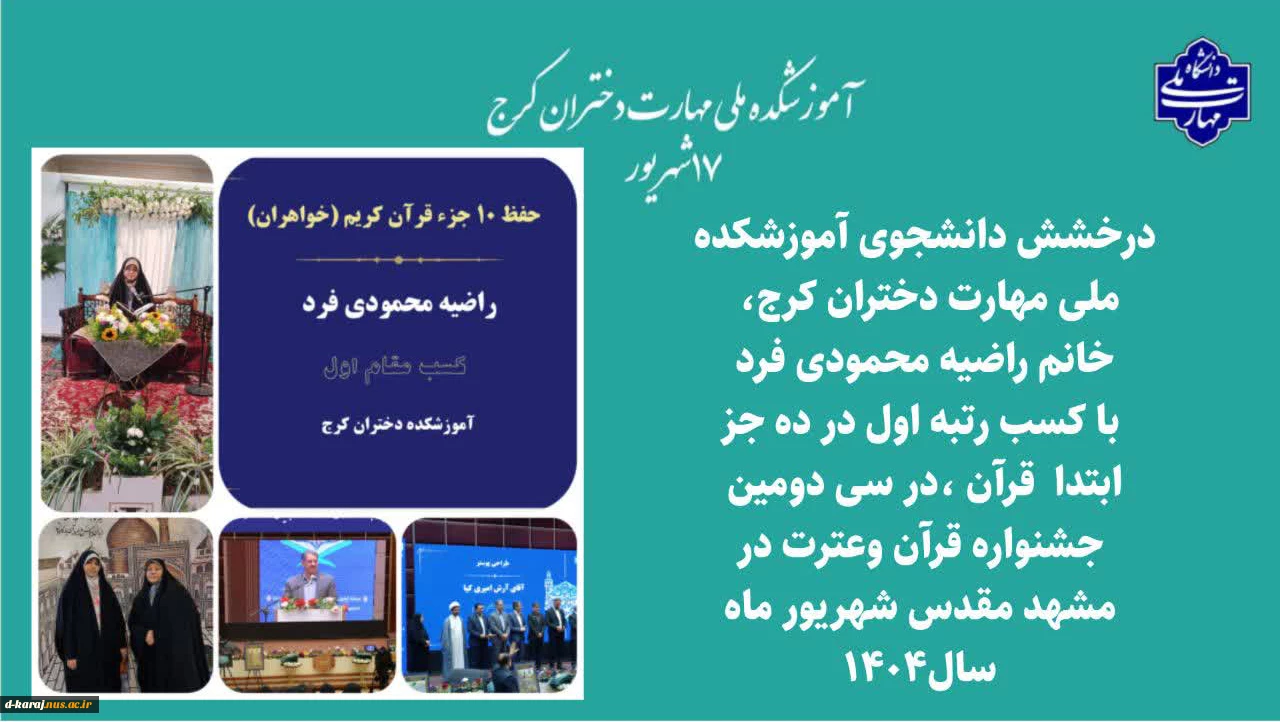 امتیاز دهید : درخشش دانشجوی آموزشکده دختران کرج در مسابقات قرآن و عترت 2 شنبه 22 شهریور 1404 ساعت 12:28