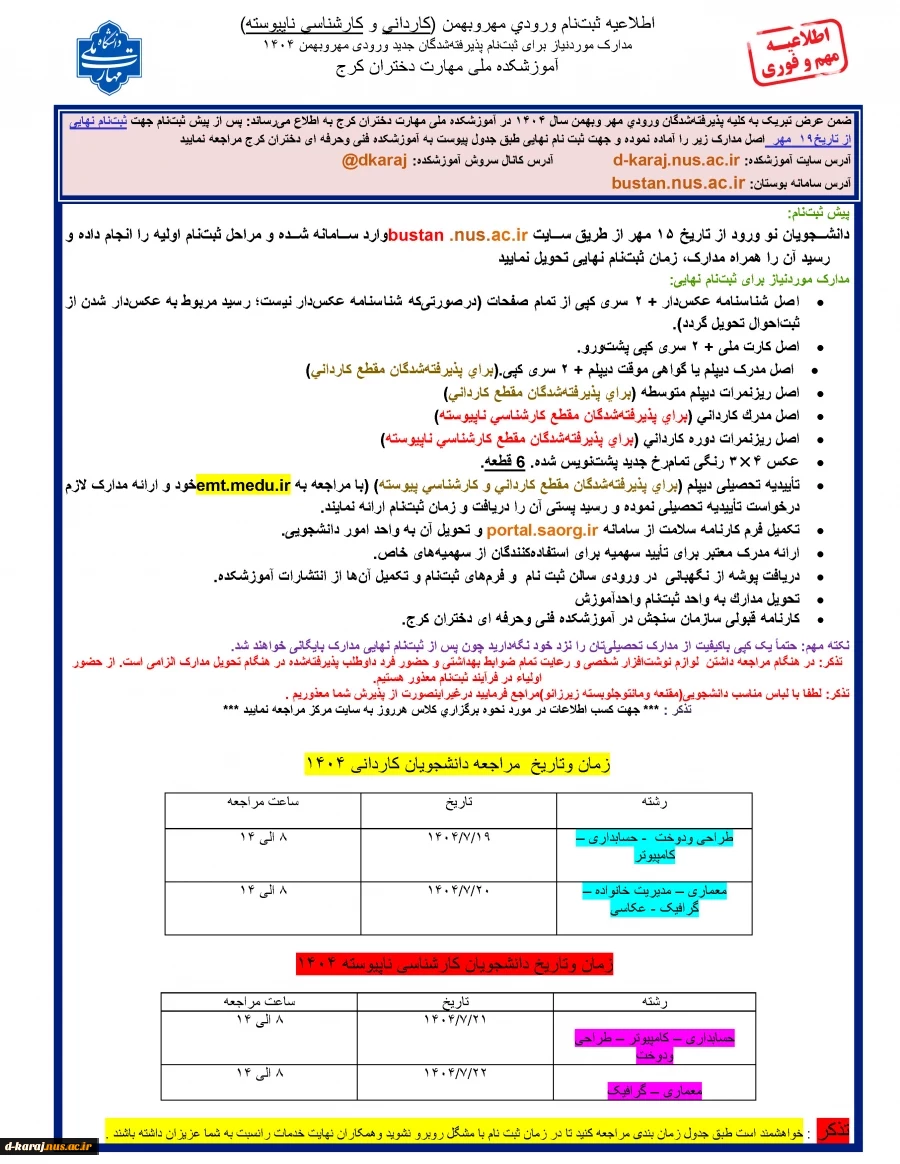 مدارک ثبت نام کاردانی وکارشناسی 2